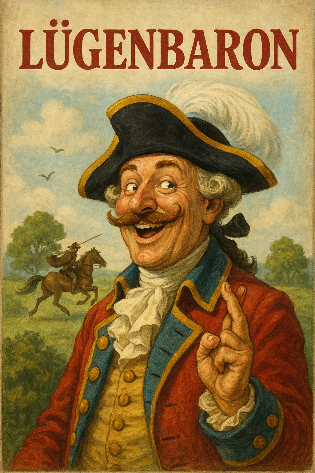 tium: a slightly overweight all-inclusive tourist with a colorful shirt walking along the beach in front of a big hotel while holding a dring and dragging a suitcase in 80s movie poster artstyle