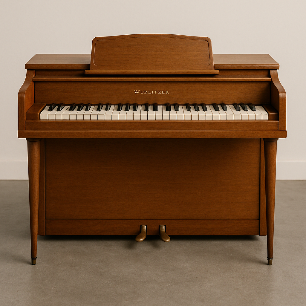 tium: a hohner clavinet d6 in outer space. please don't just render a random mix of keyboard instruments. look t the specific design of the clavinet d6. in watercolor artstyle.