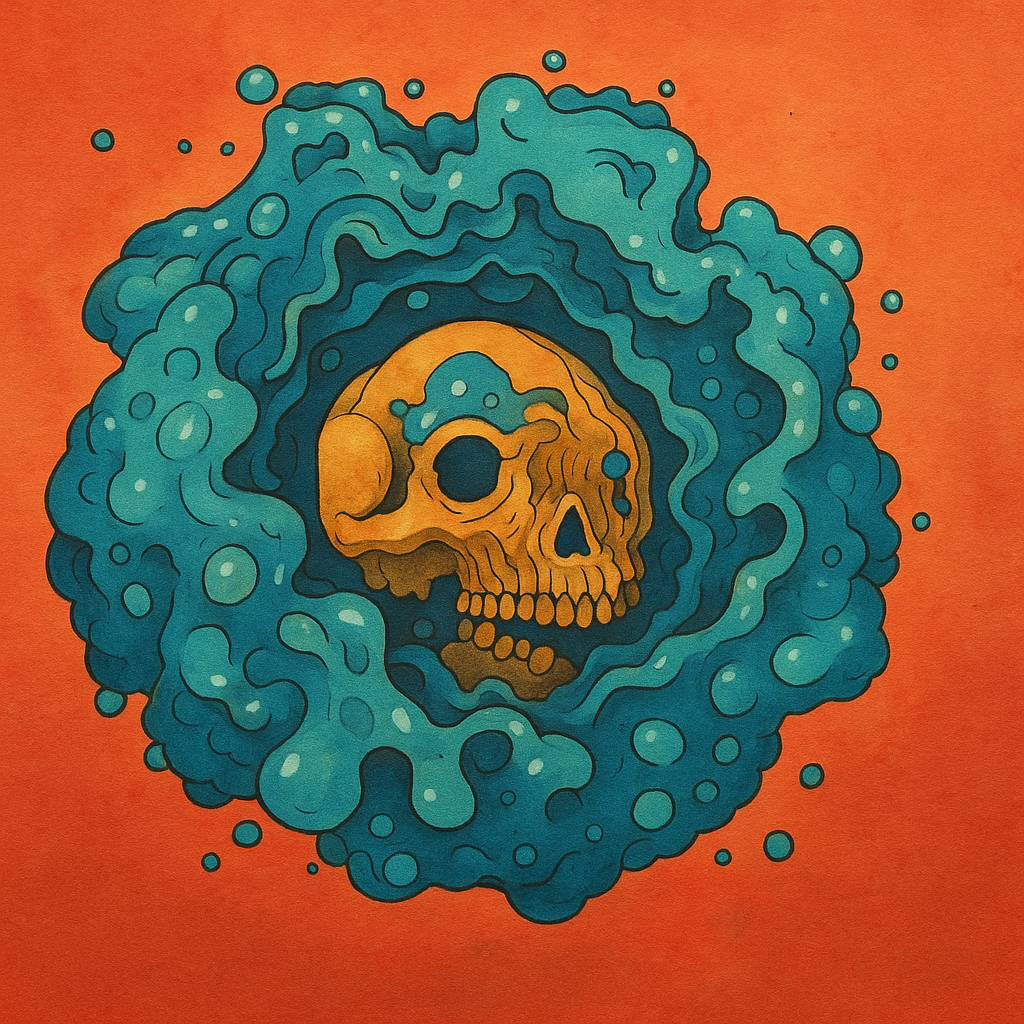 chosi: [edit of https://irc.cho.si/files/fe085bde0291acbd/image.png] color and shade this this appropriately, leave the original lines as is, make it a nice toxic touch around the center skull