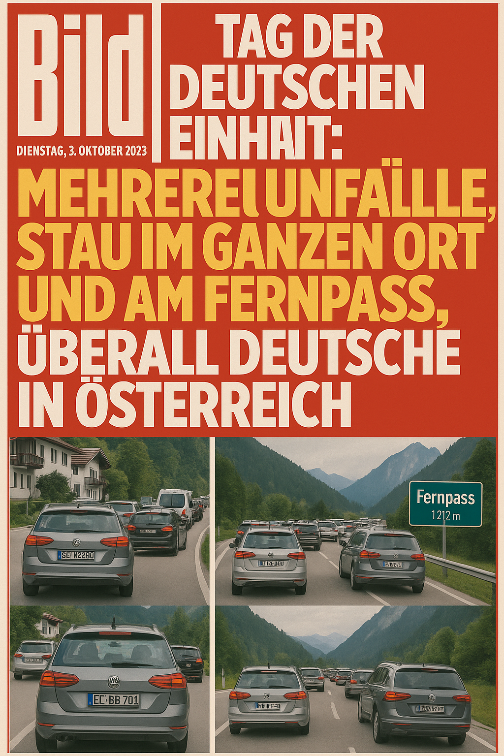 tium: [edit of https://cho.si/archive/7ZJ6j.png] als titelbild einer boulevardzeitung mit der schlagzeile "Tag der deutschen Einheit: mehrere Unfälle, Stau im ganzen Ort und am Fernpass, überall Deutsche in Österreich"