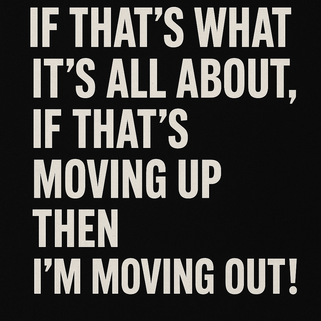 tium: a scene that embodies the words: "if that's what it's all about - if that's moving up, then i'm moving out!"